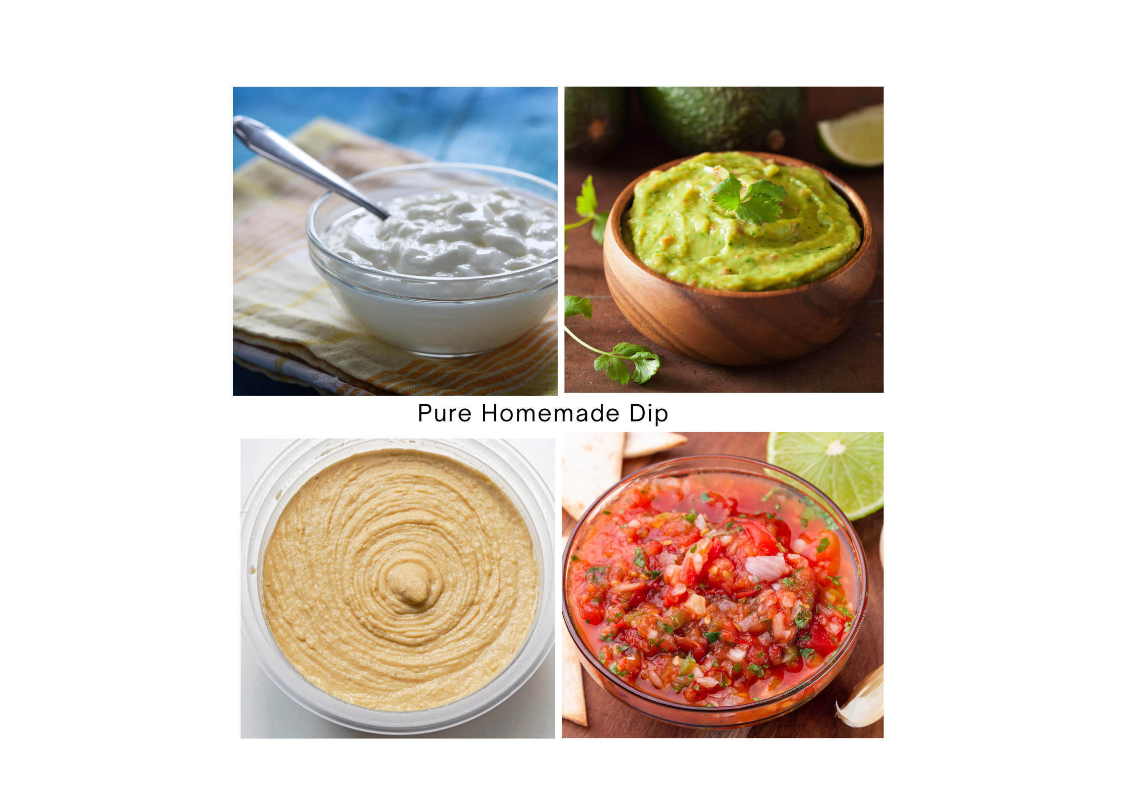 We use pure, homemade dips like hung curd, avocado mash, tomato salsa, and hummus, prepared fresh in our kitchen.They’re low in fat, free from preservatives, and made with natural ingredients